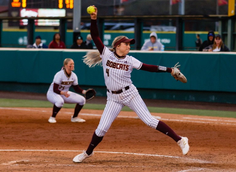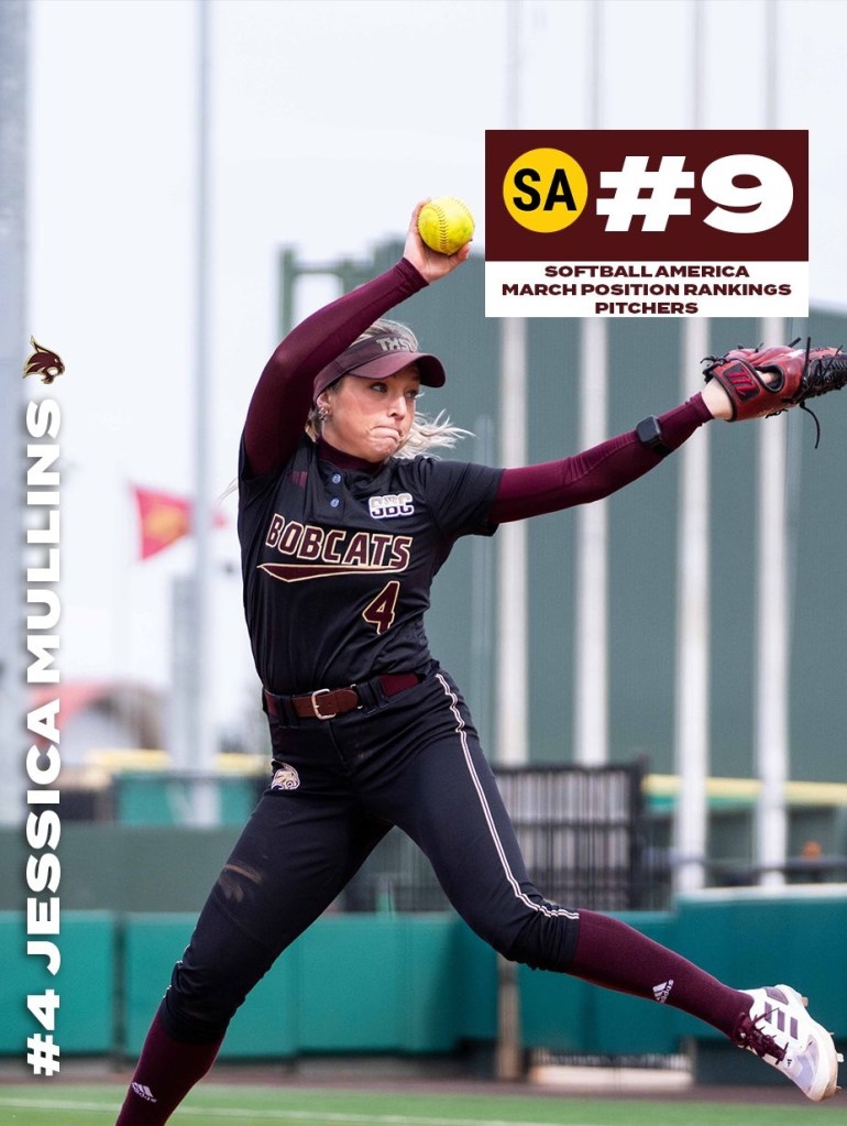 This past Saturday Jessica Mullins pitched a perfect game against the UTEP Miners as she led the Bobcats to a 7-0 win and her ninth win this season. This was also her 78th career win, which is fourth all time on the Bobcats career win list. She currently trails Chandler Hall (80 wins), Nicole Neuerburg (107 wins), and Randi Rupp (110 wins).